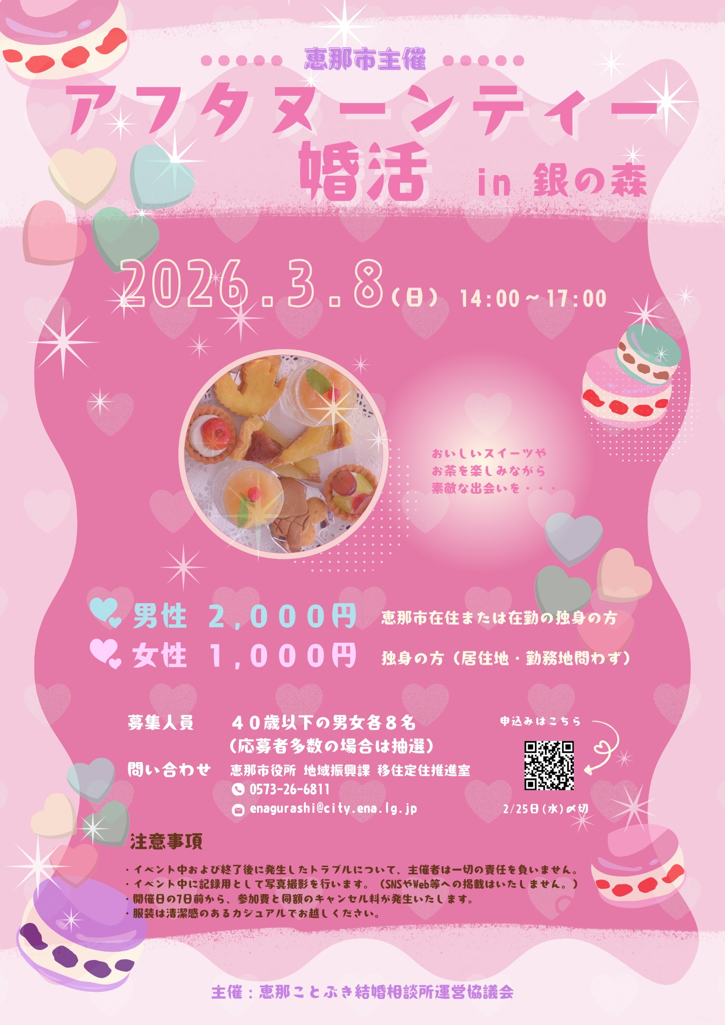 岐阜県恵那市が主催する婚活事業が開催されます。